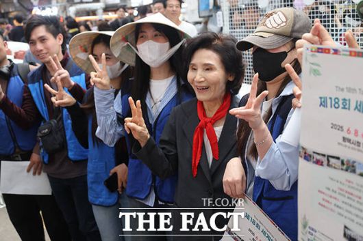 [더팩트ㅣ임영무 기자] 김문수 국민의힘 대선 후보의 부인 설난영 여사가 25일 충남 예산과 경기도 평택을 찾아 지지를 호소했다.