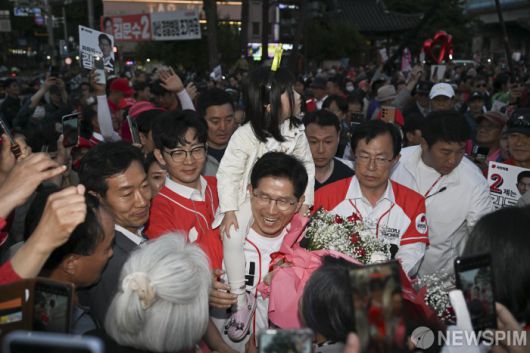 [아산=뉴스핌] 최지환 기자 = 김문수 국민의힘 대선 후보가 25일 저녁 충남 아산시 온양온천역 광장에서 열린 유세에서 지지를 호소하고 있다. 2025.05.25 choipix16@newspim.com |