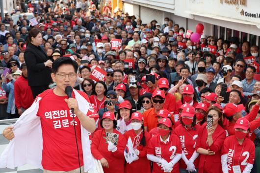 김 후보는 "아산이 아주 여러가지로 훌륭한 교통도시가 됐다. 접근성도 좋고, 국가 산단도 많고, 세계적인 기업도 많고, 농업도 잘되고 모든 면에서 훌륭한 아산"이라며 "아산에 오니까 걱정이 별로 안된다. 여러분이 잘하고 계셔서 잘 될 것 같다. 너무 감사하다"고 전했다.