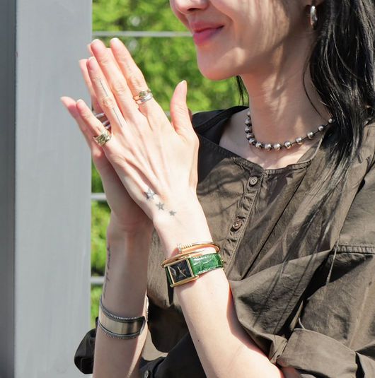 그러나 발레라나라면 보통의 이미지가 있기 마련이었다. 가령 우아하다거나, 조신할 것 같은 이미지를 지니기도 하는 셈이다. 그에 반면 윤혜진은 손등의 타투나 굵직한 액세서리를 수 개를 레이어드하며 힙한 느낌의 패션을 즐겨 입었다. 이날도 윤혜진은 볼드한 반지를 몇 개씩 끼었지만 오히려 잘 어울리는 모습을 보였다.