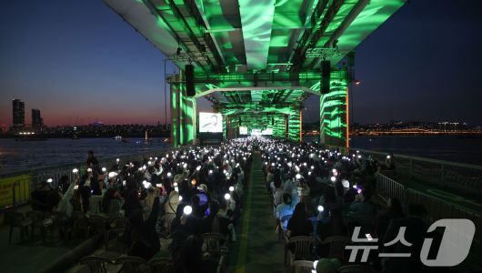 (서울=뉴스1) 박세연 기자 = 그룹 ‘세븐틴’이 25일 서울 잠수교 위에서 데뷔 10주년 기념 무료 공연 ‘B-DAY PARTY’를 하고 있다. 이번 공연은 차 없는 잠수교 뚜벅뚜벅축제의 일환으로 한강 다리 위에서 열린 최초의 K팝 공연이다. 2025.5.25/뉴스1