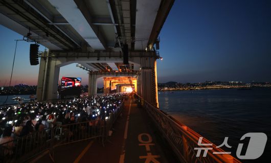 (서울=뉴스1) 박세연 기자 = 그룹 ‘세븐틴’이 25일 서울 잠수교 위에서 데뷔 10주년 기념 무료 공연 ‘B-DAY PARTY’를 하고 있다. 이번 공연은 차 없는 잠수교 뚜벅뚜벅축제의 일환으로 한강 다리 위에서 열린 최초의 K팝 공연이다. 2025.5.25/뉴스1