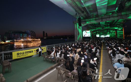 (서울=뉴스1) 박세연 기자 = 그룹 ‘세븐틴’이 25일 서울 잠수교 위에서 데뷔 10주년 기념 무료 공연 ‘B-DAY PARTY’를 하고 있다. 이번 공연은 차 없는 잠수교 뚜벅뚜벅축제의 일환으로 한강 다리 위에서 열린 최초의 K팝 공연이다. 2025.5.25/뉴스1