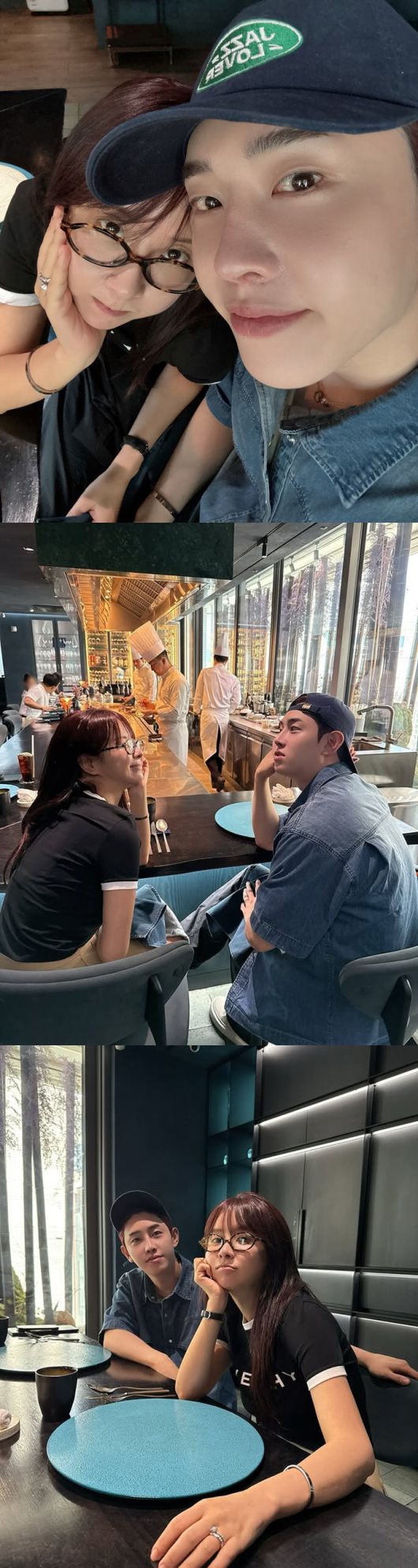 사진을 본 팬들은 "신혼부부의 달달한 데이트" "좋은 식당에서 데이트했네요" "보기 좋은 커플" 등의 댓글을 남겼다.