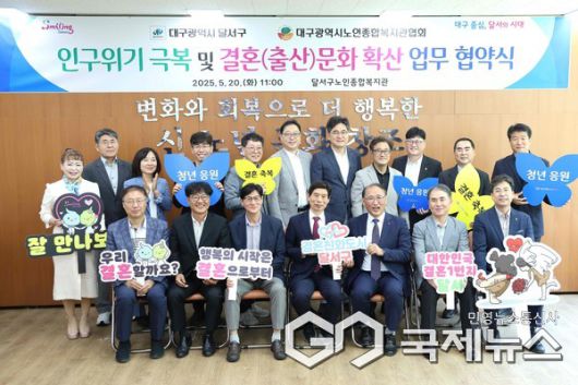 (대구=국제뉴스) 백운용 기자 = 이태훈 달서구청장은 "초저출생이라는 사회적 위기를 극복하기 위해 지역사회가 뜻을 모으고 세대 간 연대와 공동체적 돌봄이 살아 있는 달서형 결혼친화 문화가 전국으로 확산될 수 있도록대 대구시 노인종합복지관협회와 업무협약을 체결하고, 지역사회와의 공동 대응 체계를 강화했다"고 25일 말했다.