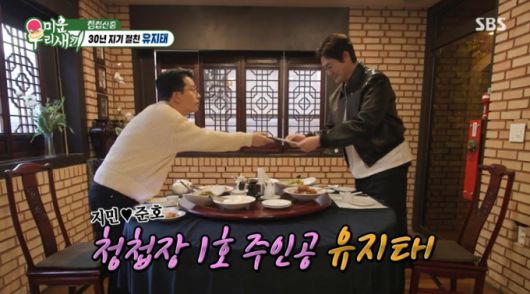 김준호가 30년 지기 절친 유지태를 만나 청첩장을 건넸다. /사진=SBS '미운 우리 새끼' 캡처 |