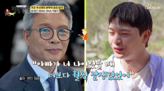 육성재는 “그것도 아버지가 맨날 본인한테 감사하라고 하신다. ‘아빠가 너 나이였을 때 너보다 훨씬 잘생겼었다. 아빠가 좋은 유전자를 줬으니까 항상 감사하는 마음으로 살아’ 라고 하셨다. 저는 인정한다. 아버지가 굉장히 잘생기셨다”라고 말했다.