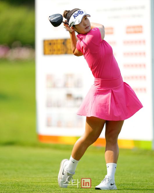 김민별이 1번홀에서 경기를 치르고 있다.