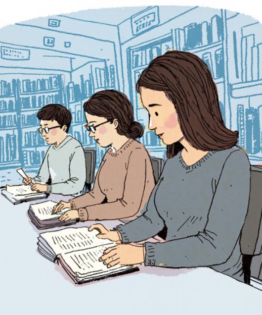 도서관에 도착해 신청서를 작성했다. 학번을 쓰는 난에서 잠시 당황했지만 ‘2008’을 쓰자 자석처럼 따라붙는 뒤 번호에 스스로도 감탄했다. 따끈따끈한 출입증을 손에 쥐고 도서관 개찰구를 통과하는데 왠지 모를 긴장감에 지하철을 처음 타는 사람처럼 버벅거렸다. 졸업 후 십여 년간 굳게 닫혀 있던 추억에 마침내 발을 들이는 순간이었다.