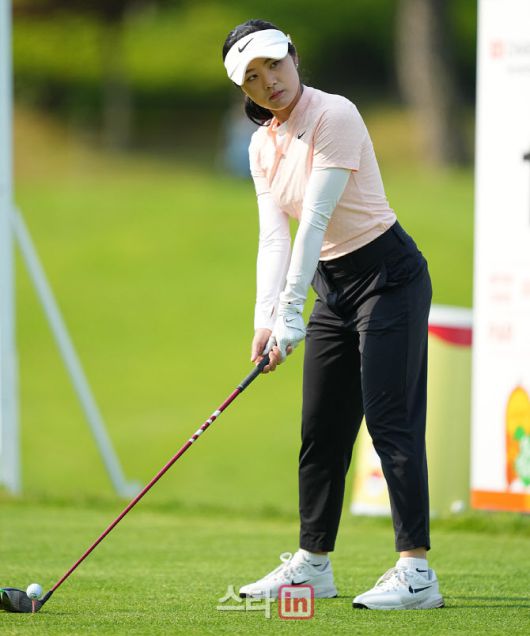 손예빈이 1번홀에서 경기를 치르고 있다.