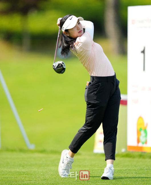 [이데일리 골프in=(여주)조원범 기자]25일 경기도 여주에 위치한 페럼클럽(파72ㅣ6,569야드-예선ㅣ6,366,야드-본선)에서 '제13회 E1 채리티 오픈'(총상금 10억 원, 우승상금 1억 8천만 원)최종라운드가 열렸다. 손예빈이 1번홀에서 경기를 치르고 있다.