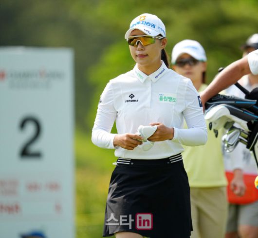 정윤지가 2번홀에서 경기를 치르고 있다.
