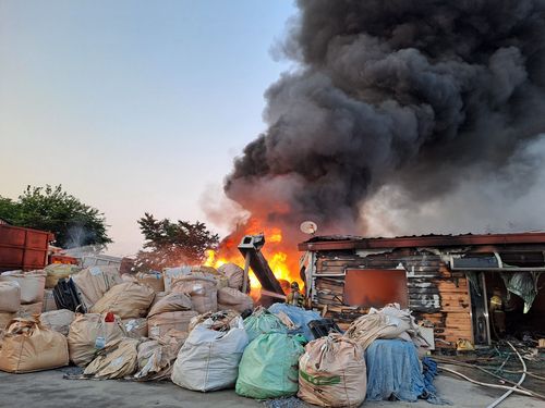 (익산=연합뉴스) 임채두 기자 = 25일 오후 6시 56분께 전북 익산시 함라면의 한 폐기물 재활용 업체에서 불이 났다.