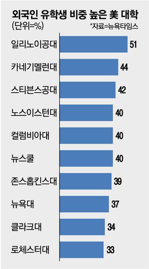 트럼프 행정부의 조치가 현실화하면 대학 재정뿐만 아니라 국가 경제에도 영향을 줄 것이라는 분석이 나왔다. NYT에 따르면 학부와 대학원을 합쳐 미국 내 유학생이 가장 많은 곳은 일리노이공대다. 재학생 중 51%가 외국에서 왔다. 카네기멜런대(44%), 컬럼비아대(40%), 존스홉킨스대(39%), 뉴욕대(NYU·37%), 캘리포니아공대(32%), 시카고대(31%), 보스턴대(30%) 등도 유학생 비중이 높다. 미국 비영리 국제교육자협회(NAFSA)에 따르면 2023∼2024학년도에 110만여 명의 유학생이 미국 경제에 기여한 경제적 규모는 약 430억달러(59조원)에 이르는 것으로 분석된다. 대부분 수업료와 주택 자금이다.