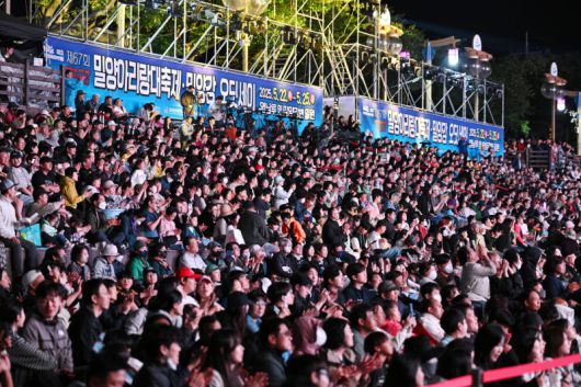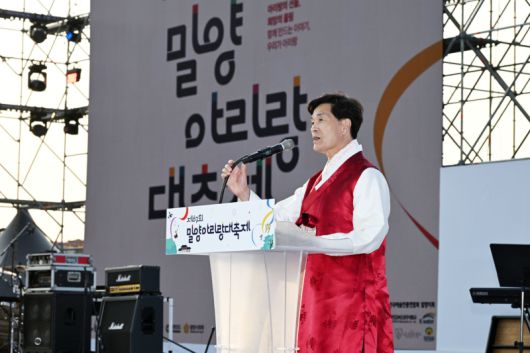 25일 경남 밀양시 영남루 및 밀양강변 남청강변로 일원에서 밀양아리랑대축제 밀양시민 열린음악회가 열리고 있다. ◆제67회 밀양아리랑대축제-차 없는 거리 신나는대로 ◆제67회 밀양아리랑대축제-폐막식