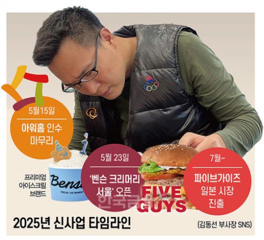 김 부사장이 맞닥뜨린 현실에서도 해결해야 할 과제가 수두룩하다. 아워홈 인수를 통한 푸드테크와의 시너지 창출, 새롭게 론칭한 아이스크림 브랜드 ‘벤슨’의 안정적인 시장 안착, ‘파이브가이즈’의 일본 진출 등 올해 신경써야 할 것이 한두 개가 아니다. 무엇보다 한화그룹의 첫째 김동관 부회장과 둘째 김동원 사장이 각각 방산, 금융 분야에서 가시적인 성과를 내는 만큼 김 부사장의 부담감이 만만치 않을 것으로 짐작된다.