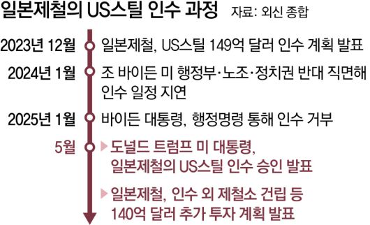 트럼프의 승인 배경으로는 일본제철이 제시한 140억 달러(약 19조1500억원) 규모의 대규모 추가 투자 계획이 결정적이었다는 분석이 나온다. 인수 금액(149억 달러) 이외에 별도로 집행될 이 투자금의 규모는 2년 전 14억 달러에서 10배로 불어났다. 일본제철은 이 투자를 통해 새로운 제철소를 건설하고 기존 설비를 현대화할 방침이다. 대부분의 투자가 향후 14개월 내에 이뤄질 것이라고 트럼프 대통령은 설명했다.
