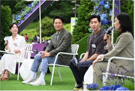 오세훈(왼쪽 두 번째) 서울시장이 24일 서울 동작구 보라매공원에서 열린 서울국제정원박람회에서 참석자들과 ‘정원도시 서울’ 토크콘서트를 하고 있다. 서울시 제공 |