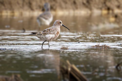함께 관찰된 붉은갯도요는 머리에서 배까지 선명한 적갈색이며 민물도요와 비슷하지만, 부리가 길며 아래로 굽은 점이 다르다.