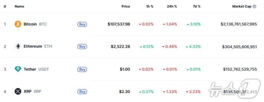 이 시각 현재 주요 암호화폐 시황-코인마켓캡 갈무리 |