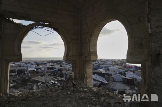 [가자시티=AP/뉴시스] 가자지구 가자시티 항구를 따라 팔레스타인 피란민들의 천막촌이 길게 늘어서 있다. 이스라엘군은 일요일인 25일에도 가자 전역을 폭격해 34명이 죽고 수백명이 부상했다. 2025.05.26. |