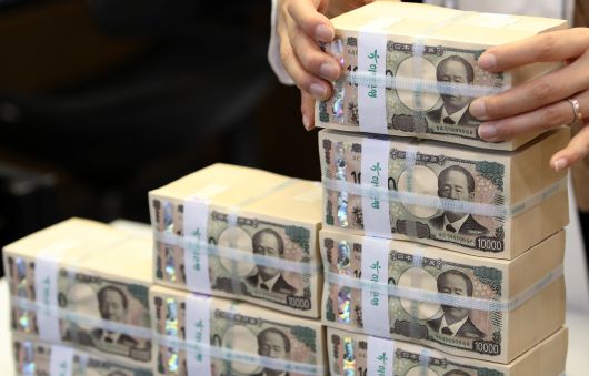 서울 중구 하나은행에서 직원이 엔화를 정리하고 있다./뉴스1 |
