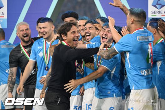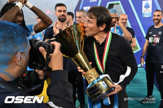 우승하자마자 나폴리를 떠나기 직전인 콘테 감독이다. 그는 이번 시즌 부임하자마자 팀을 세리에 A 정상으로 이끄는 기염을 토했다. 나폴리는 24일 열린 리그 최종전에서 칼리아리를 2-0으로 잡아내며 승점 82(24승 10무 4패)로 자력 우승을 달성했다.
