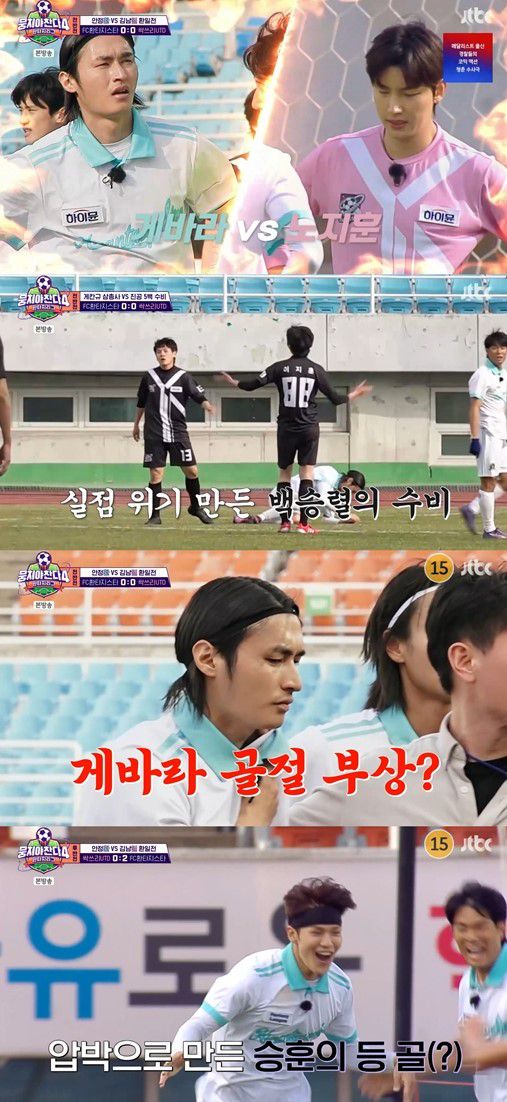 (엑스포츠뉴스 김수아 기자) '뭉쳐야 찬다4' 안정환 팀이 에이스 게바라의 부상 이탈에도 불구하고 승점 3점을 따냈다.