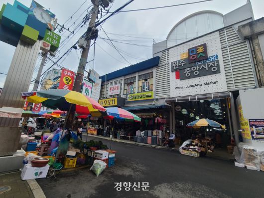 지난 24일 강원 원주 중앙시장에서 상인들이 물건을 팔고 있다. 이보라 기자