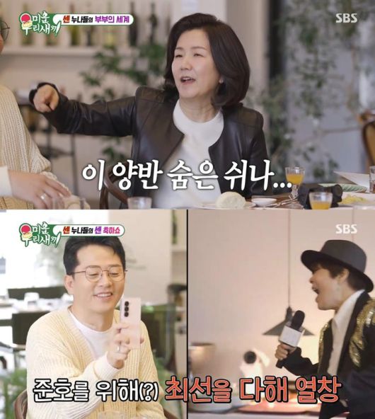 이어 김준호는 이성미, 이경실, 조혜련을 만났다. "프러포즈가 감동적이었다. 그때 울던 이상민도 갑자기 결혼하더라"라며 놀라워하는 누나들에게 김준호는 "상민이 형 혼인신고한 날 원희 형이 '이놈의 세상'이라며 술을 마시더라"라고 밝혀 폭소를 자아냈다.