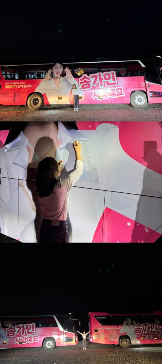 어게인 버스는 콘서트, 축제, 행사 등 송가인의 활동 현장을 따라 이동하며 응원을 펼치는 팬덤 전용 차량이다. 지난해 1호차에 이어 지난 20일 2호차가 도로 위에 모습을 드러냈고, 3호차까지 제작이 준비 중인 것으로 전해졌다.