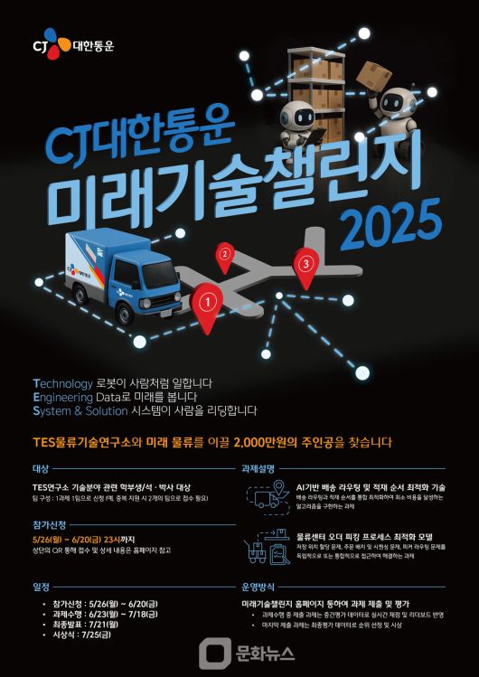 CJ대한통운은 실무 중심의 물류기술 경진대회인 '미래기술 챌린지 2025'의 참가자 접수를 시작한다고 26일 밝혔다.