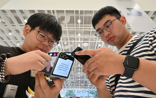 지난해 7월 공개된 갤럭시 Z 플립6를 외국인 관광객들이 살펴보고 있다. 임세준 기자 |