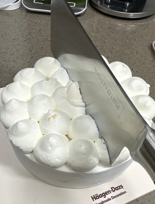 최근 온라인 커뮤니티와 사회관계망서비스(SNS), 유튜브 등에는 '3대가 덕을 쌓아야 먹을 수 있는 케이크'란 제목으로 하겐다즈 리얼블랑이 소개됐다. 아이스크림 케이크인 만큼 그 단단함을 자랑해 중식도로도 케이크를 자를 수 없다는 후기들이 쏟아진 것.