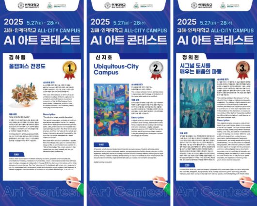 글로컬대학사업본부는 전 세계 청년 창작자들이 참여한 'AI 생성 아트 콘테스트'를 개최한다. 'All-City Campus'를 주제로 AI로 제작한 이미지 작품 20점을 27일과 28일 대학 본관 로비에 전시해 기술과 예술을 결합한 창의 콘텐츠를 선보인다.