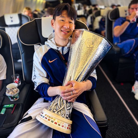 유로파리그에서 우승한 손흥민이 우승트로피를 껴안고 있다. /토트넘 인스타그램 |