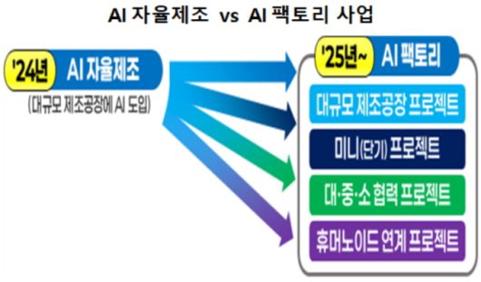 산업부는 제조 AI 도입의 시급성과 현장 수요 등을 감안해 기존 'AI 자율제조'를 'AI 팩토리'로 전면 확대 개편하고, 사업의 양적·질적 고도화를 추진할 계획이다.