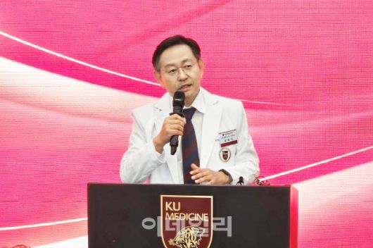 윤을식 고려대학교의료원 의무부총장이 26일 고대의대 의학관에서 진행된 기자간담회에서 발표하고 있다.(사진=안치영 기자) |
