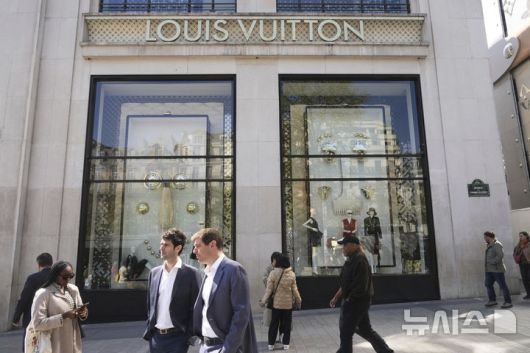 [파리=AP/뉴시스] 25일(현지 시간) 월스트리트저널에 따르면 유럽 명품 업계는 '명품 브랜드의 미국 생산'은 말이 안 되는 일이라고 했지만, 트럼프발 관세 정책은 이를 압박하고 있다. 사진은 파리에서 사람들이 루이비통 플래그십 스토어 앞을 지나가고 있는 모습. 2025.05.26. |