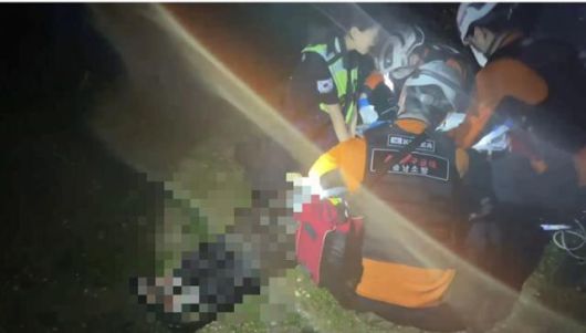 태안해경과 충남소방본부 소속 구조대원이 25일 오후 9시33분쯤 태안군 당암포 해변에서 해루질 중 바다에 빠진 부부를 구조하고 있다. 태안해경 제공 |