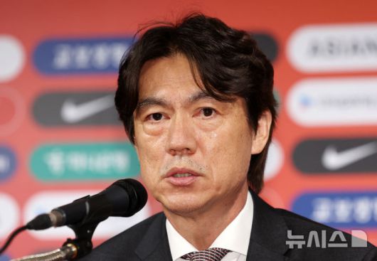 [서울=뉴시스] 이영환 기자 = 홍명보 축구대표팀 감독이 26일 오전 서울 종로구 축구회관에서 6월 A매치에 나설 대표팀 명단 발표를 마친 후 취재진의 질문에 답하고 있다. 홍명보 감독이 이끄는 축구대표팀은 오는 6월6일 이라크 바스라에서 이라크와 9차전 원정 경기를 치른 뒤 10일 서울월드컵경기장에서 쿠웨이트와 최종 10차전 홈 경기를 벌인다. 2025.05.26. 20hwan@newsis.com |