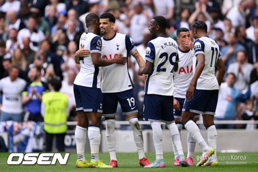 우승 축제 분위기였던 토트넘은 기분 좋게 출발했다. 전반 17분 텔이 페널티킥을 얻어냈고, 솔란케가 정확하게 차 넣으며 리그 9호 골을 터트렸다.