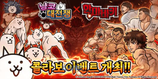 주식회사 포노스(대표: 츠지코 요리카츠)는 병맛&귀염 타워디펜스 게임을 대표하는 <냥코대전쟁>에서 TV 애니메이션 ’한마 바키’와의 콜라보레이션 이벤트를 2025년 5월 26일 11시부터 개최한다고 밝혔다.