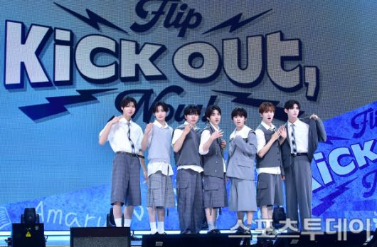 26일 서울 광진구 예스24라이브홀에서 킥플립 미니 2집 '킥 아웃, 플립 나우!'(Kick Out, Flip Now!) 발매 기념 쇼케이스가 개최됐다. 일곱 멤버들은 우렁찬 인사를 건네며 풋풋하면서도 다부진 면모를 보였다.