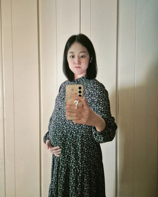 사진 속에는 임부복을 입은 박보미의 모습이 담겨 있다. 5개월임에도 불구하고 제법 눈에 띄게 나온 배가 시선을 사로잡는다.