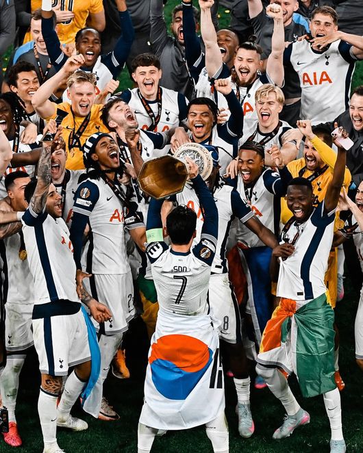 이제 토트넘 역사상 3번째로 영광의 주장 명단에 이름을 올린 손흥민. 토트넘은 구단 소셜 미디어를 통해 멀러리와 페리먼, 손흥민이 트로피와 함께 있는 이미지를 올리며 "손흥민은 유럽대항전 트로피를 들어 올린 토트넘 캡틴들의 엘리트 그룹에 합류했다. 공인된 토트넘 레전드"라고 집중 조명했다.