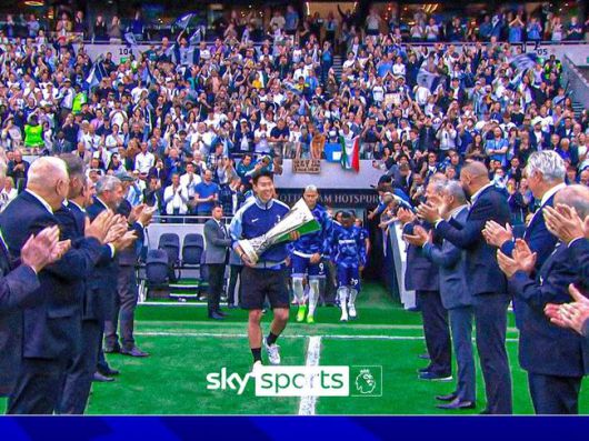 손흥민은 스티프 페리맨과 마틴 치버스, 오스발도 아르딜레스 등 전설적인 토트넘 선배들의 축하를 받으며 팬들에게 인사를 건넸다. 그는 관중들과 한껏 우승의 기쁨을 만끽한 뒤에야 부주장 제임스 매디슨에게 트로피를 건네줬다.