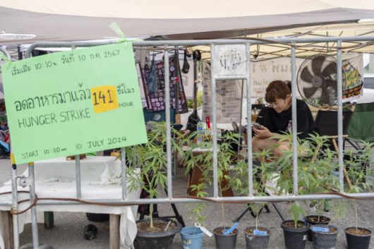 지난해 7월 태국 정부가 대마초를 마약 리스트에 복원시키려고 시도하자 대마초 합법화에 찬성하는 반대론자들이 정부 청사 밖에서 항의시위를 하고 있다. (사진=AFP) |