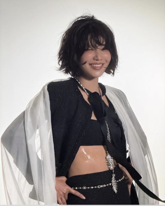 사진 속 수영은 블랙 튜브톱에 미니스커트를 매치한 의상으로 복근 라인을 강조했고, 피부에 바른 듯한 광채와 짧은 웨이브 단발 헤어로 한층 강렬해진 분위기를 드러냈다.