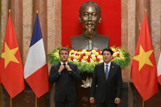 아에프페(AFP)와 로이터 통신은 26일(현지시각) 마크롱 대통령이 동남아시아 순방 첫 일정으로 베트남 하노이를 방문해 르엉끄엉 베트남 국가주석을 만났다고 보도했다. 마크롱 대통령은 베트남을 시작으로 6일간 인도네시아, 싱가포르를 차례로 방문할 예정이다.